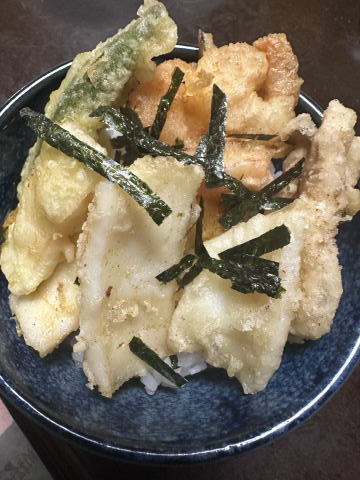 夕飯に行きました。アオリ入りお好み焼き&天麩羅、美味しいですよ!