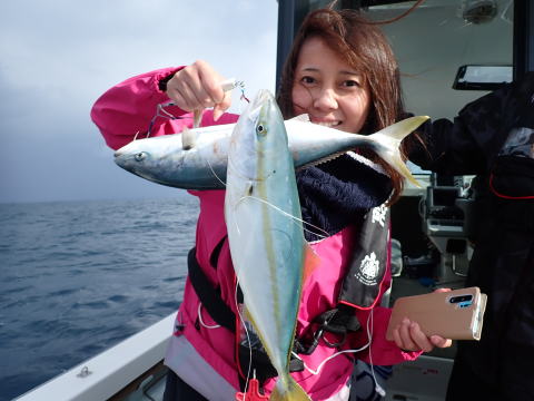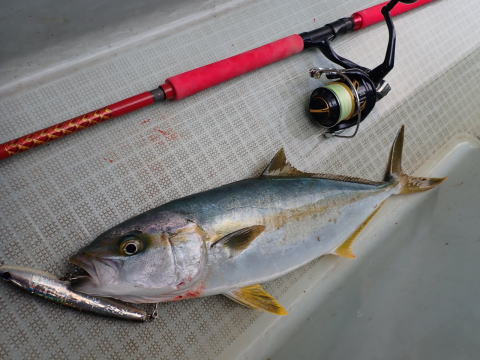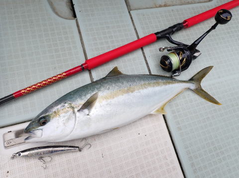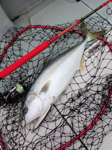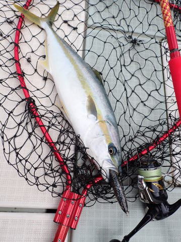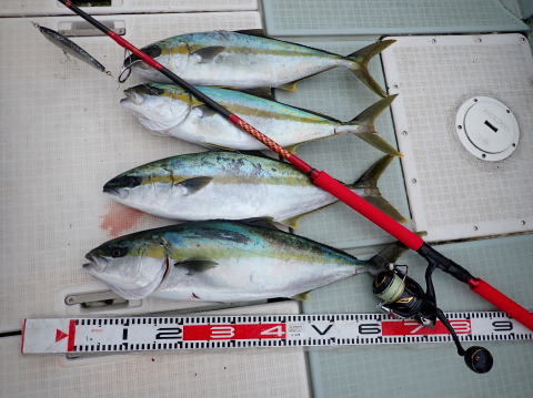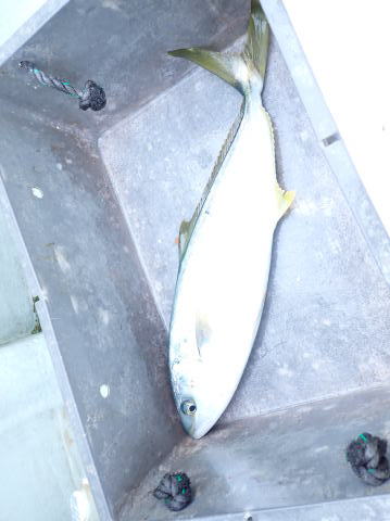最初にヒラマサを1本キャッチしてから、ハマチ釣り、