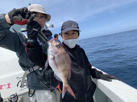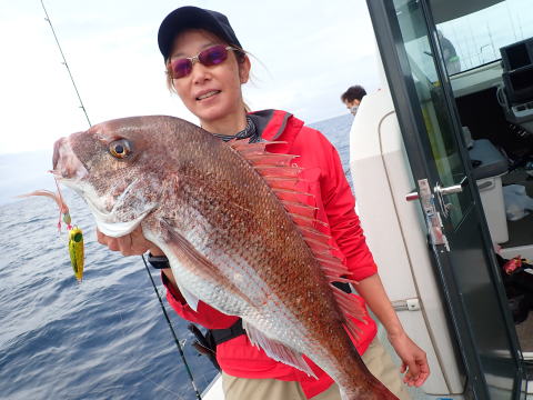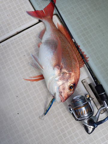 親子でスーパーライトジギング堪能、真鯛キャッチ!