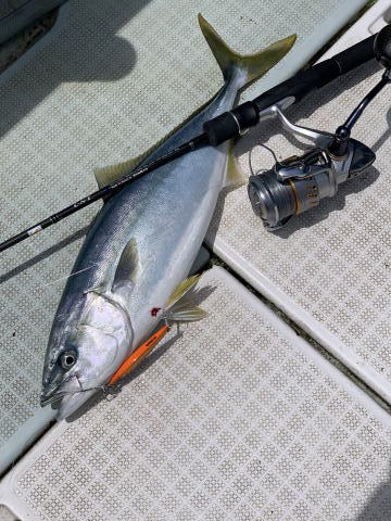 ブリがヒット!その後もWヒットがあり、1本キャッチ!そいつは大物でした。
