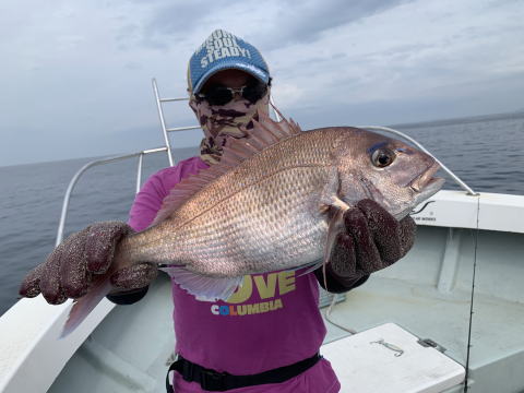 前半の静かな時間帯に真鯛は揚がり、後半は風が強くやり辛くなり