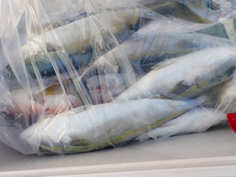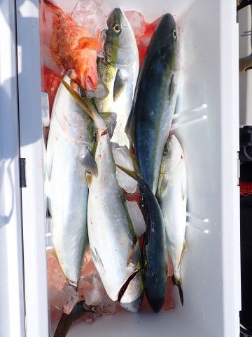 その後も少しポイントをズラせば、また掛かりっぱなしでブリ、真鯛も混じり終いには