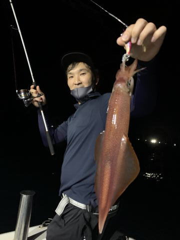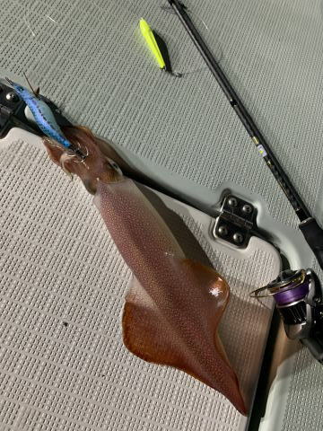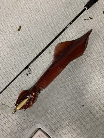 スルメイカとはデカイのでかなり引いたようでした。変なの揚がったので