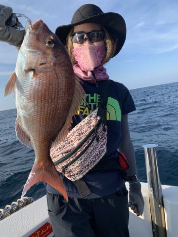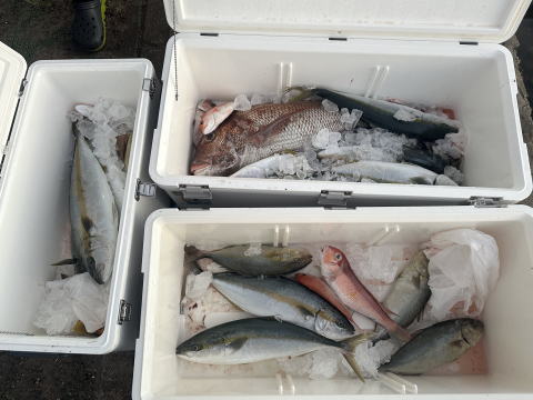 16:00出航で明るい時間帯は鯛カブラで五目釣り、いい真鯛が揚がっていました。
