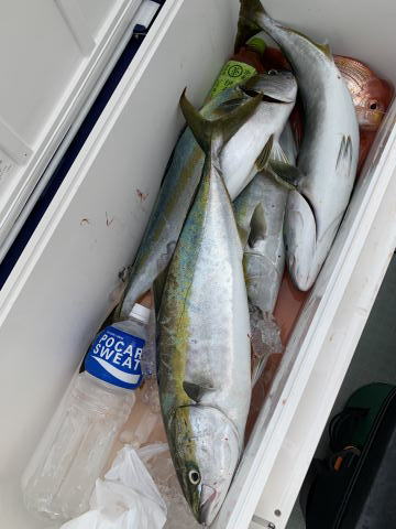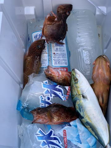 8/7 ハマチ大 ガシラ5匹 アオハタ レンコダイ 真鯛 シロイカ少々