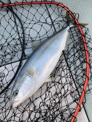 前日より潮が速く、ポイントを換えてハマチの60cm近いのと、越えてそうなのが