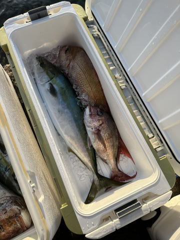 中盤からはブリが当たり後半は真鯛ラッシュになり堪能して頂けたようでした。