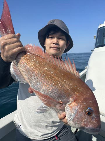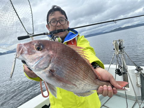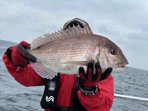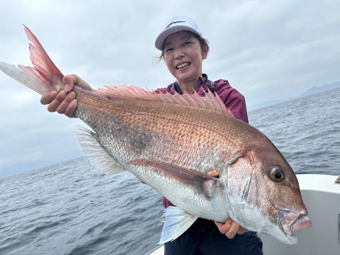 ルアー釣り初挑戦の女性もカブラで真鯛、ジギングでガシラをキャッチ!でした。
