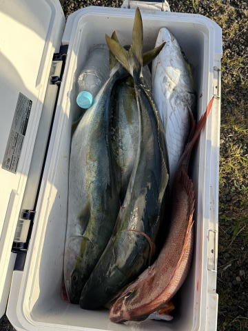 5/5 鰤6本 88cm×3、85cm×3、マルゴ10本 真鯛3枚 アヤメカサゴ