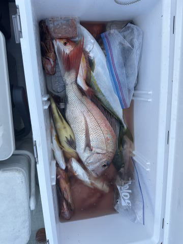 刺し餌でイトヨリ4匹 レンコダイ3枚 アオハタ マダイ マアジ マサバ カイワリetc