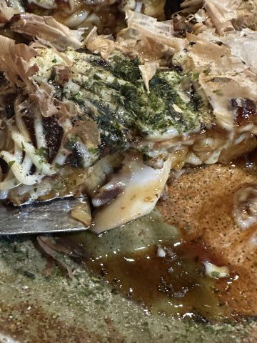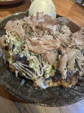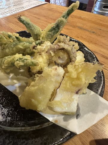 夕飯に行きました。アオリ入りお好み焼き&天麩羅、美味しいですよ!