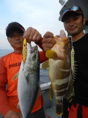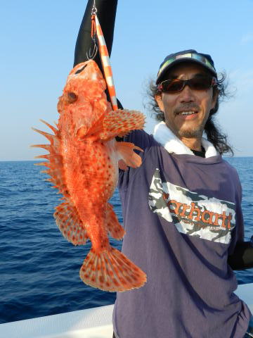 日曜日も最初はスロージギング、カブラで根魚狙い、船の流れがトロくてアタリが少ない日でした。