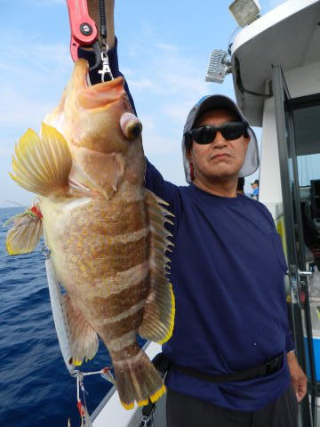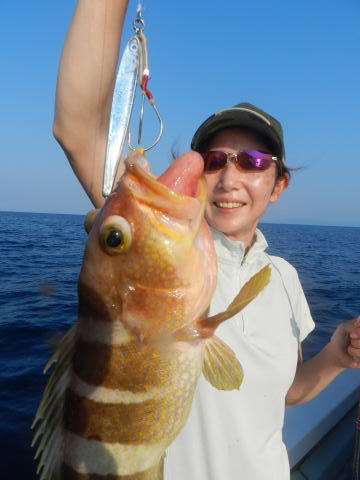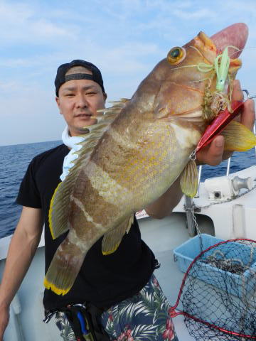 土曜日は、最初はインチク、カブラで根魚狙い、いい型のアオハタが揚がりました。
