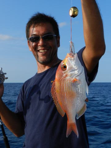 8月、1回目の出航、前半の魚釣りは流す度に色々、当たってくれて楽しめました。