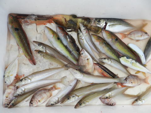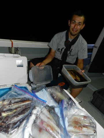 8/11 アマダイ レンコダイ、チダイ20枚位 アオハタ2尾 カイワリ5尾 シロイカ80杯程度 スルメイカ10杯程度
