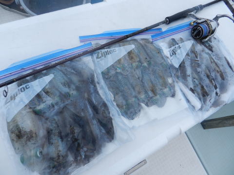深場めはスルメイカが多く船酔いの方も2名居られて、実質、竿3本の状態でした。