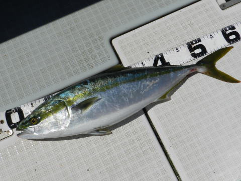 今日は青物オンリーで出航、潮が緩みイマイチでしたが大型が出ました。