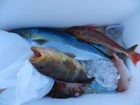 9/3 ヒラマサ ハマチ~マルゴ57cm~62cm4尾 シイラ85cm アオハタ2尾 ガシラ マダイ40cm レンコダイ