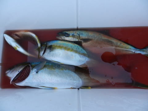 後半戦は波はボチボチでも潮は無いようで、なかなか食わず、なんとかハマチ大1本キャッチ!