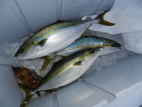 5匹、5匹、2匹+3匹となんとかハマチが揚がりました。