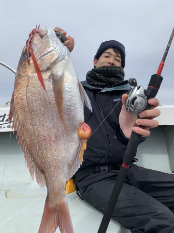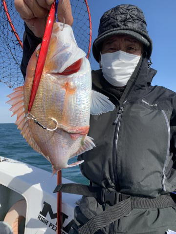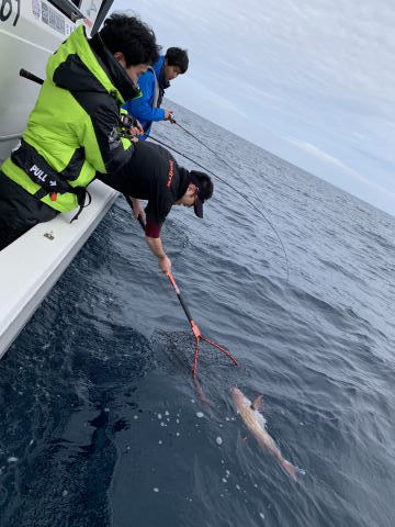 移動してジギング、タイラバをしてもらいました。鯛は船が流れなくなり